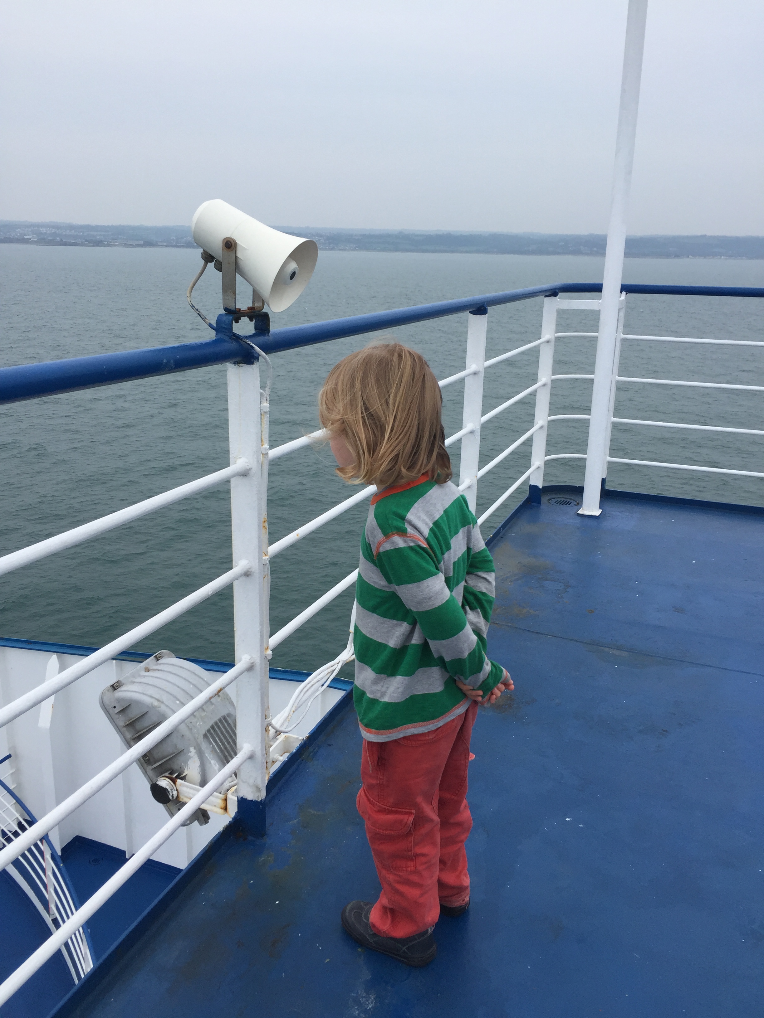 Laden with wine and cheese, we drove to Cherbourg and prepared to board the Stena Lines ferry to Rosslare in Ireland. By now seasoned travellers, the boys were delighted to be on a ‘sleeping ferry’ once more. As soon as we had sorted out our cabin we headed off to explore the ship. The captain warned us all that we were in for a rough crossing which did not thrill any of us. We explored on deck while we had the chance: “Where is the swimming pool?” wondered little WB. Looking at the grey stormy skies we assured him there would be no need for one on this trip.