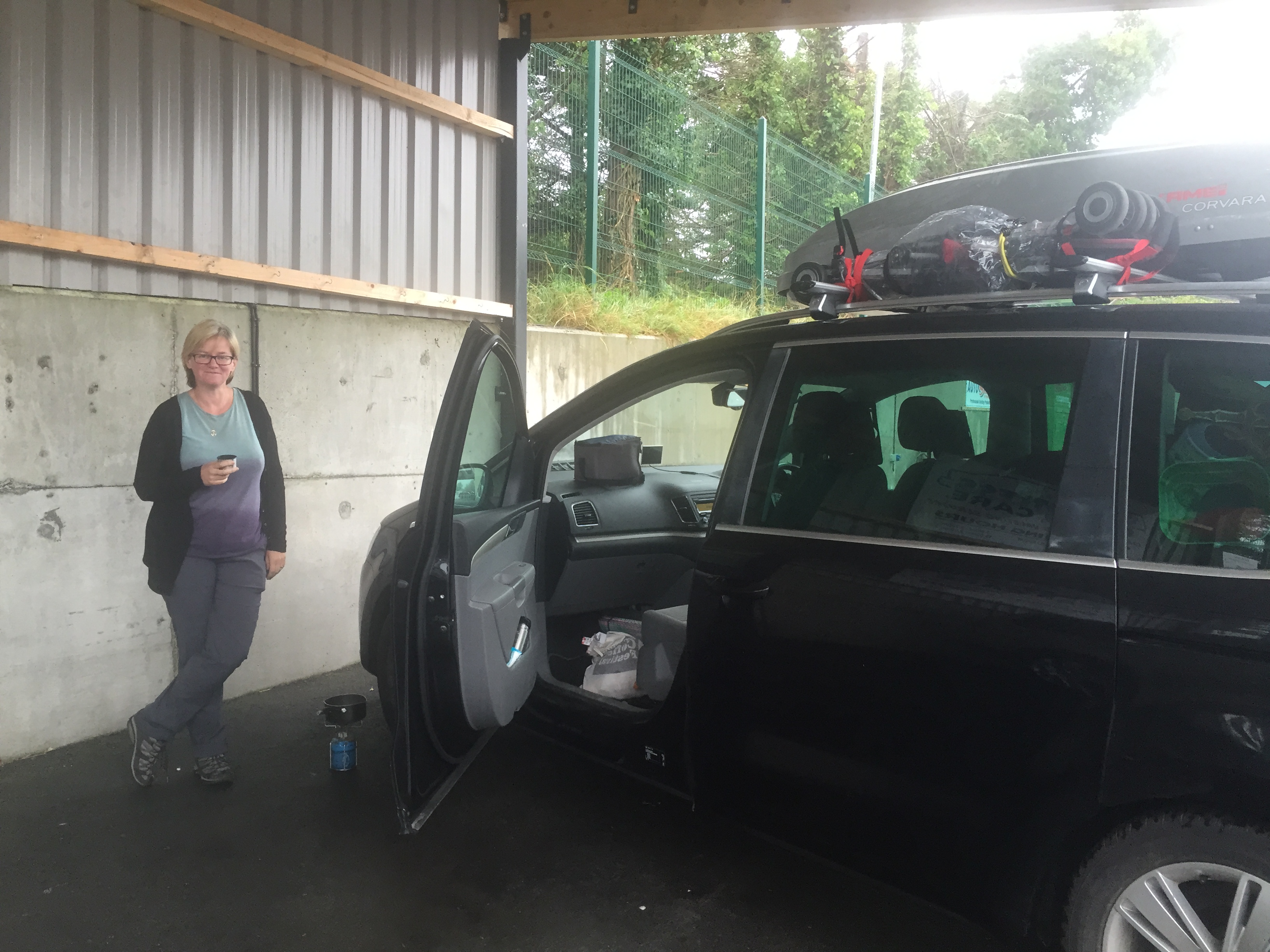 Naturally, it was raining when we arrived at Rosslare in the grey early morning. Coming off the ferry we had to remind ourselves to drive on the left. It was lovely to see the green hills of Ireland, even if they were a bit soggy. Insofar as a large MPV with UK plates, a roof box and bicycles hanging off the back can sneak, we snuck under an awning at a filling station and fired up our little gas stove to heat up a pre-prepared thermos of coffee. This is what the world had come to – no more popping into a little bar for a macchiato, a cortado or a noisette. After our picturesque stop, off we went to Ballylanders and Nanna and Grandad’s house. Hi Ho!