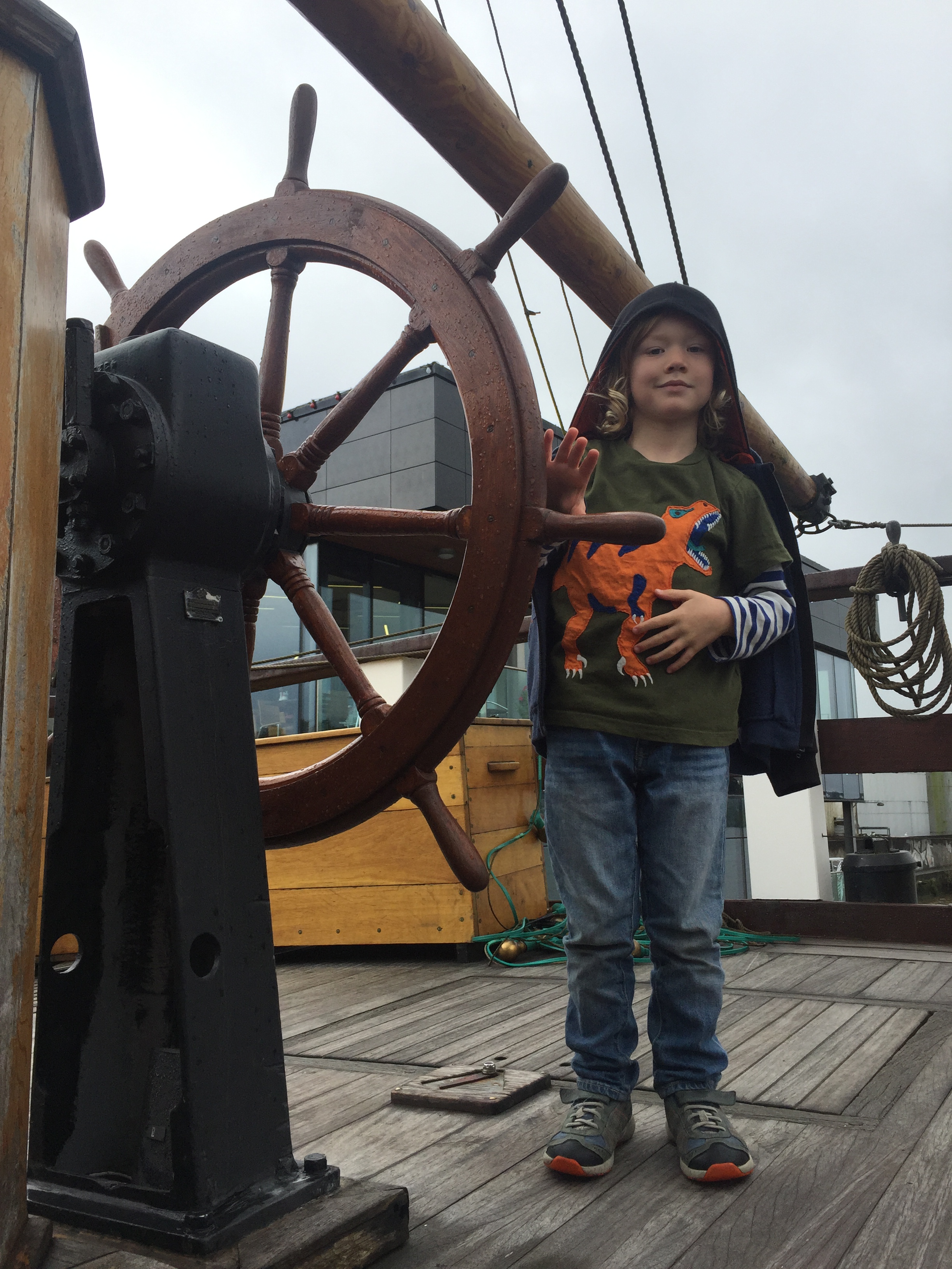 We were allowed on board to explore on our own as the staff were waiting for a large tour group to arrive. The WBBs had a great time steering the wheel, ringing the bell and poking around above and below decks. It all seemed to be extremely authentic – apart from the life-size cardboard cut-out of a Wexford boy, one of the Irish rugby team who were presently doing very well in the World Cup competition. The starving emigrants were all rugby fans, it seems.