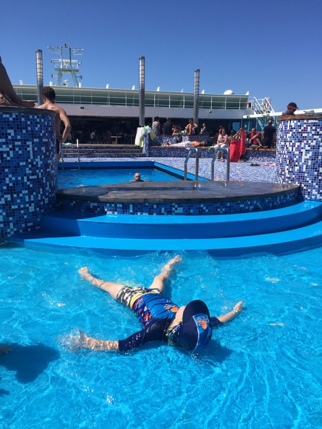 The best thing about our ship was the pool on the upper deck, next to a bar turning out tasty cortados (coffee, not cocktails 😢) Our cabin was also fine. The refuse in the corridors and toilets was a bit grim though! Grim-aldi: aptly named, we decided.