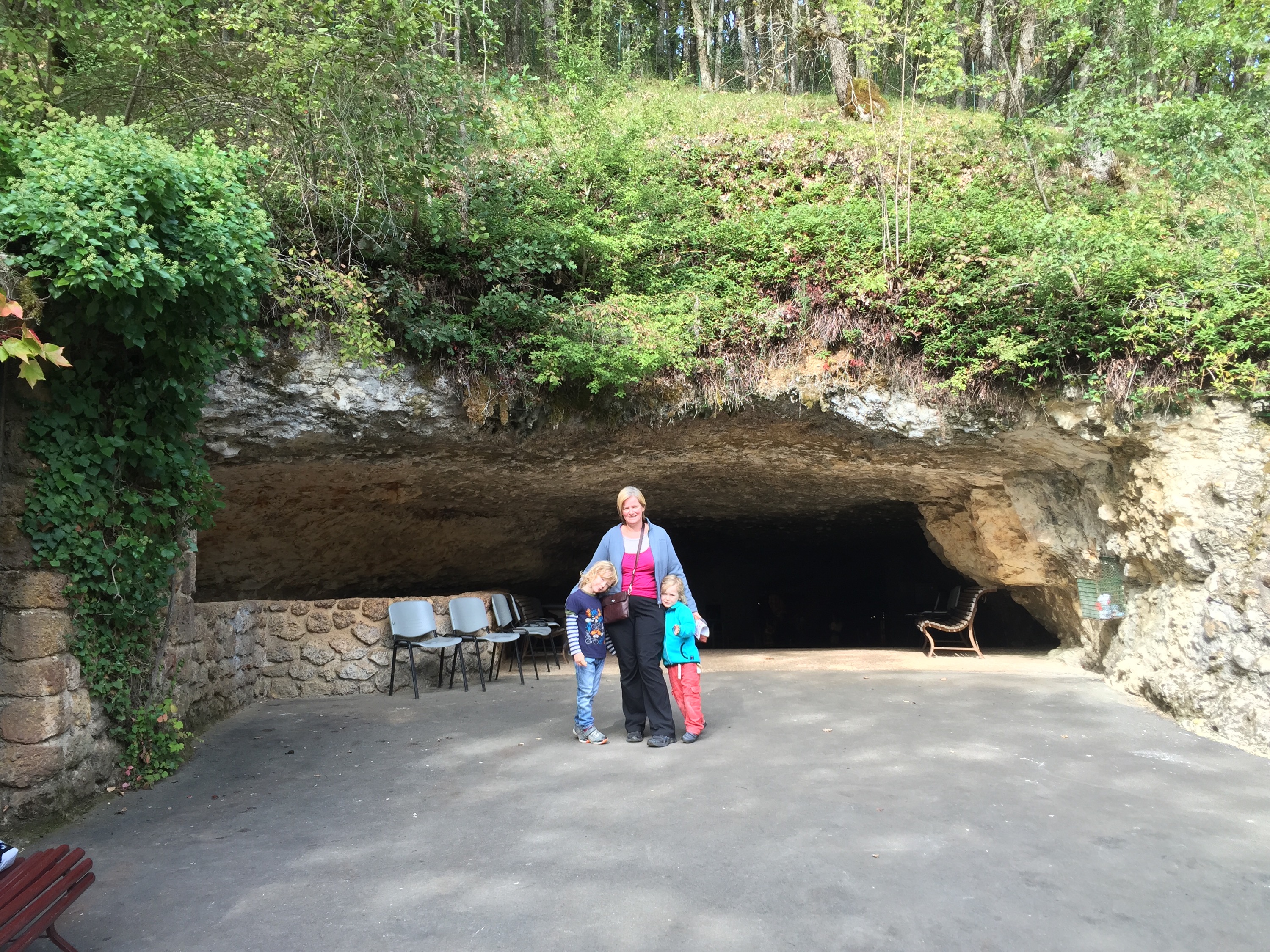 Hidden away in the Vézère Valley are a number of ancient caves featuring Paleolithic paintings, including the famous Lascaux Cave. After much research we decided to visit the Grotte de Rouffignac which was recommended as being the easiest to manage with small children. The paintings in this cave are over two kilometres underground so the owners of the site have installed an electric train to carry visitors directly to the artwork. We felt this would be a much better option than lugging the smallest WB (who weighs as much as 2 large sacks of potatoes) through dark rocky tunnels and meant the boys would also have fun riding on the train as a bonus.