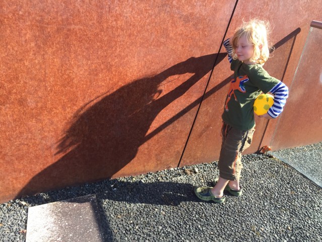 There are 20 or so giant interactive machines scattered through the grounds and the boys had great fun with these. They were able to turn paddle wheels, rotate gyroscopes and clamber over extraordinary objects. Probably the best fun was to be had working the fan- shaped machine gun which let out some very loud bangs and a puff of smoke; little WB jumped a mile and big WB was delighted.