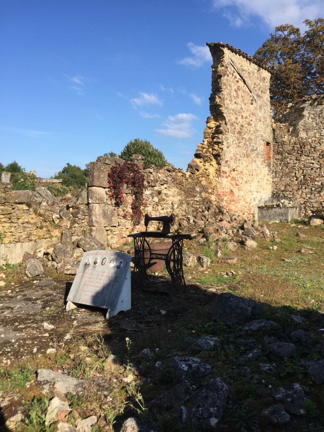 The old village of Oradour-sur-Glane was small but thriving, renowned for nothing in particular until a troop of Nazi soldiers destroyed it in June 1944. For reasons still not understood – Oradour was hardly a hotbed of the Resistance – the soldiers massacred the entire village, looted the buildings and then set them on fire. The atrocities were particularly horrible: men were taken into barns and shot in the legs, then set alight. Women and children were herded into the church and then burned alive (this took a long time as the initial incendiary device failed.) A baby was baked to death in an oven. 642 people died; only a handful of survivors escaped to tell their stories, and the rest of the tale was deciphered by French aid workers and people from the local area who searched the ruins trying to find their relatives, piecing together the grisly evidence. We were particularly moved by stories of parents who came looking for their little children who had been at school that day. Oradour had several schools and in each one, bags and coats were to be found hanging in place on their hooks, but the children had all been massacred.