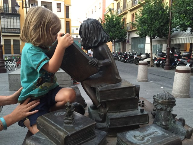 From good coffee to great music, fabulous flamenco, gorgeous 30 degree weather, beautiful architecture, parks, playgrounds. Buskers everywhere playing flamenco on rusted stringed guitars and dancing on pieces of wood. Most importantly – Seville presents amazing tapas and wine….. and children everywhere! We stumbled across a wedding reception accidentally (as you do in Seville in September as it’s wedding season) and out of 200 places set to eat, at least 40 of them were for children.