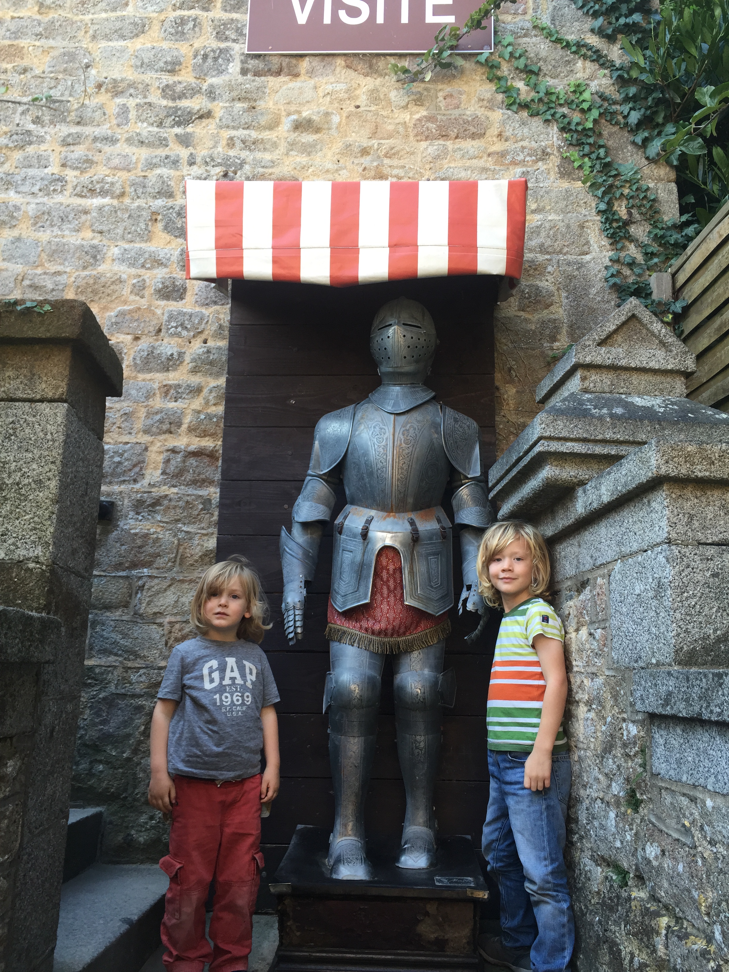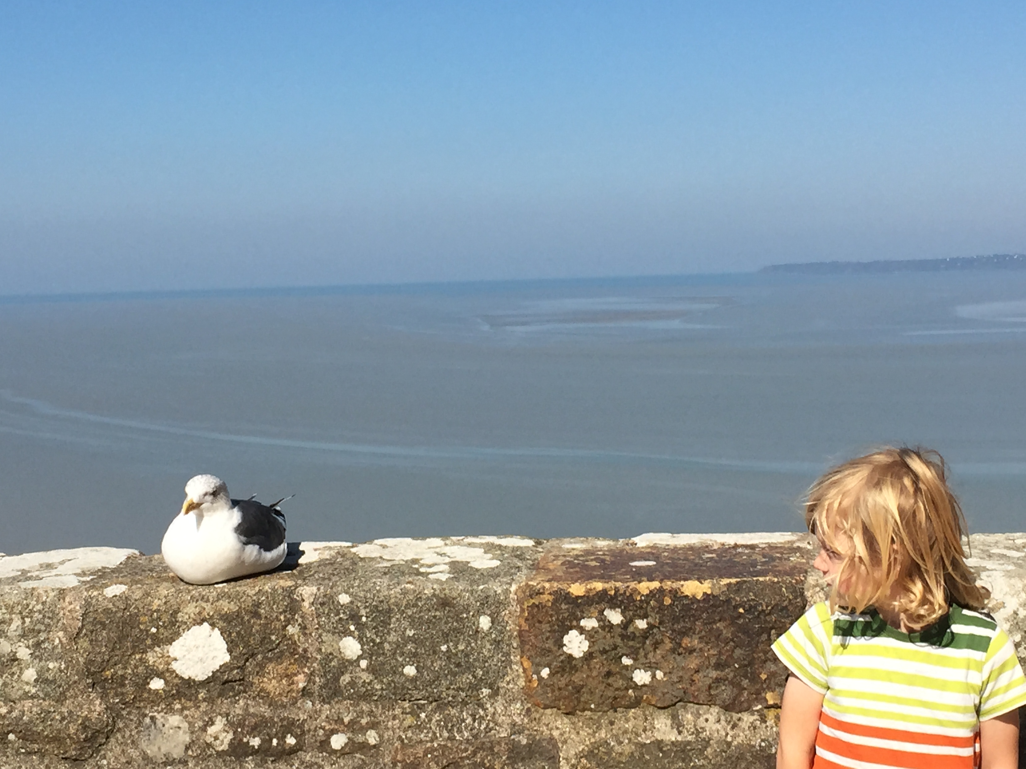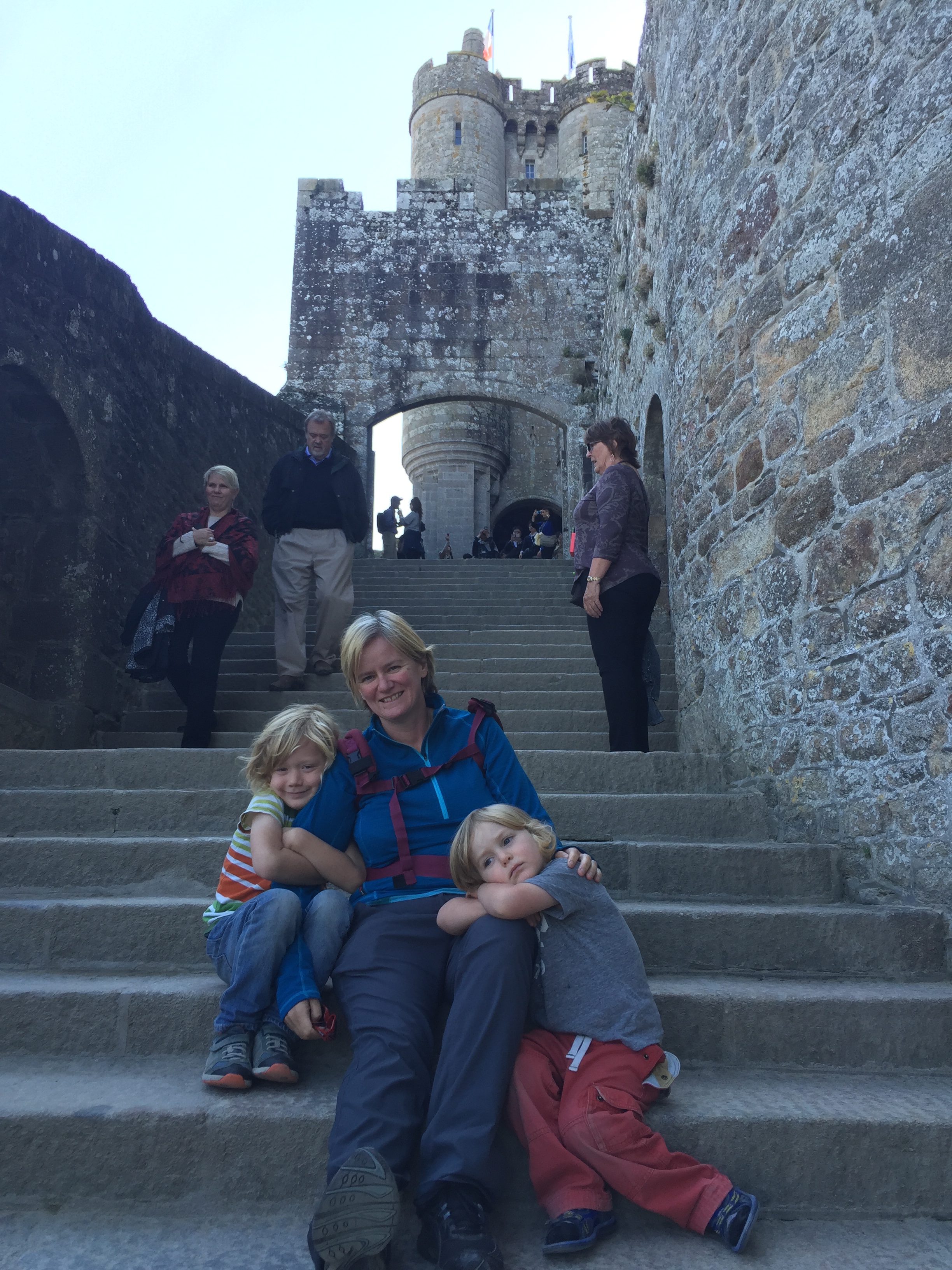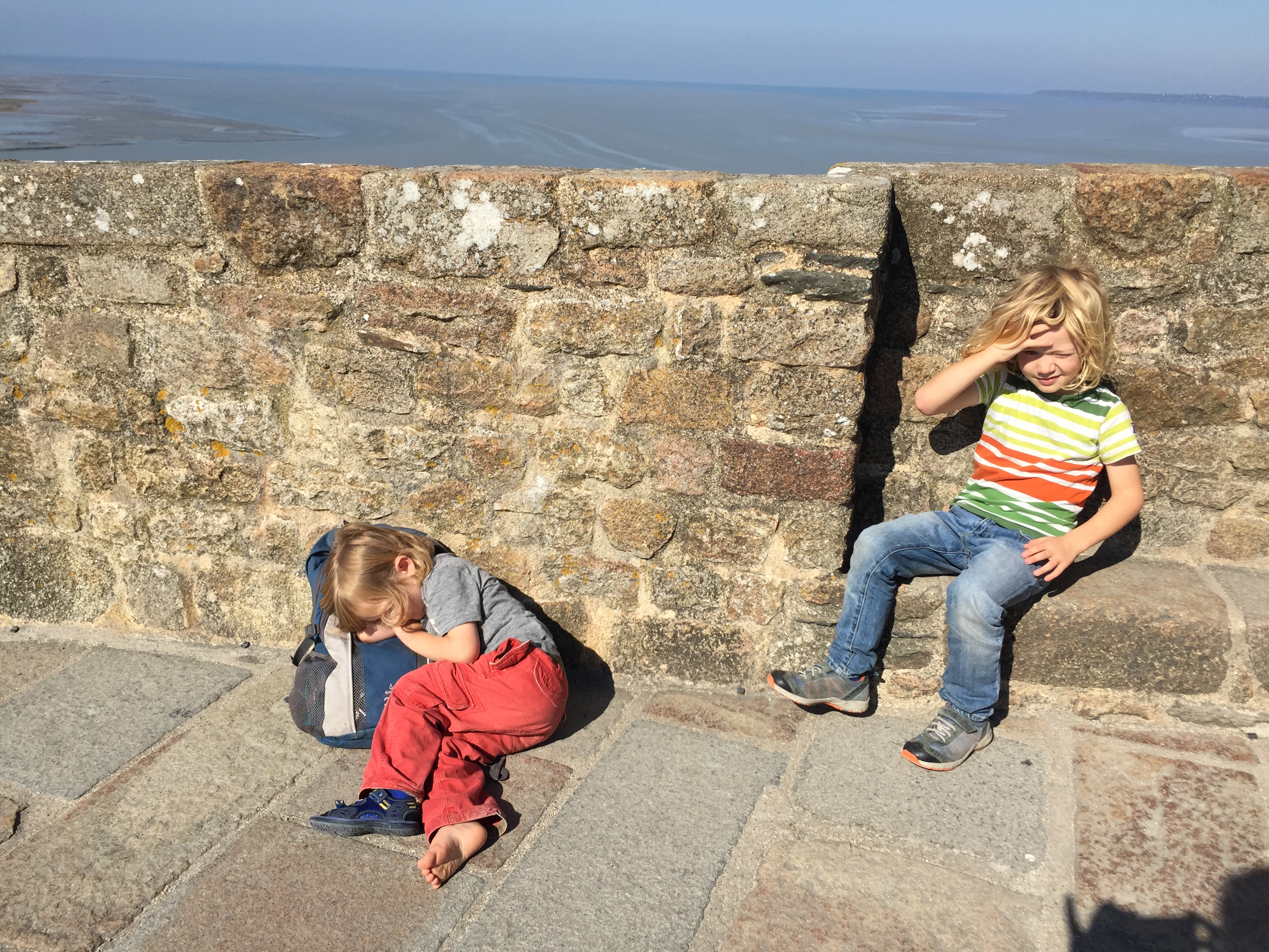 We parked in the designated area and caught the free shuttle bus to the Mont. We could have walked, but having been cautioned about the steep climb up to the abbey itself, we wanted to save the little WBB legs and also our backs from having to haul two little boys up like sacks of potatoes. We’d like to to pause here and thank our friend Natasha from the bottom of our hearts for lending us her Ergo baby carrier – we would not have survived without it.