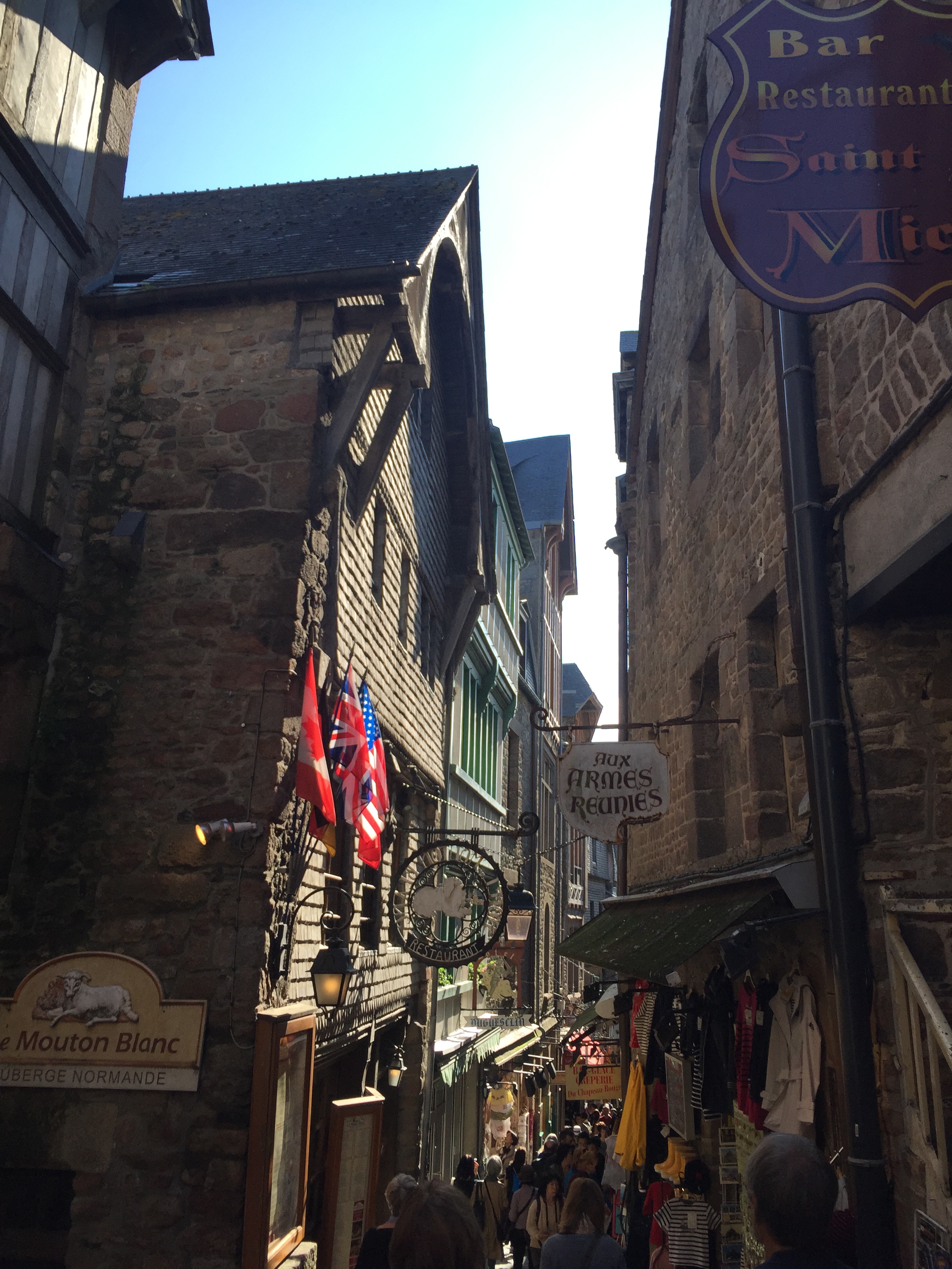 Wow! Wow! The WB mamas have always wanted to see Mont Saint-Michel, and we were extremely lucky – unusually for October and for the region, we visited on a fine, clear day. The Mont made a striking appearance when we were still some distance away – rising up from the otherwise flat landscape as if it were some kind of floating mirage. At the risk of using too many superlatives, it was a truly incredible sight.